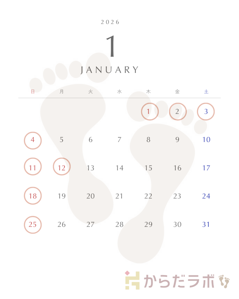1月のお休み 2025 12/26 1日(木)、2日(金)、3日(土)、4日(日)11日(日)、12日(月・祝)、18日(日)、25日(日)はお休みです Information お知らせ よかったらシェアしてね! URLをコピーしました! URLをコピーしました! 冬至 この記事を書いた人 karadalabo 関連記事 12月のお休み 2025年10月27日 コメント コメントする コメントをキャンセルコメント ※ 名前 ※ メール ※ サイト 次回のコメントで使用するためブラウザーに自分の名前、メールアドレス、サイトを保存する。 Δ