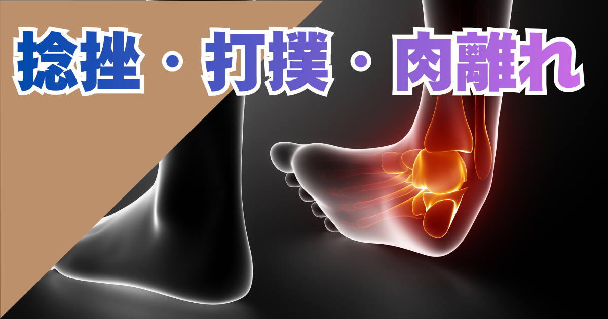 ここでは、捻挫・打撲・肉離れの症状や原因、当院での施術内容、対処法・予防法を簡潔にご紹介します。