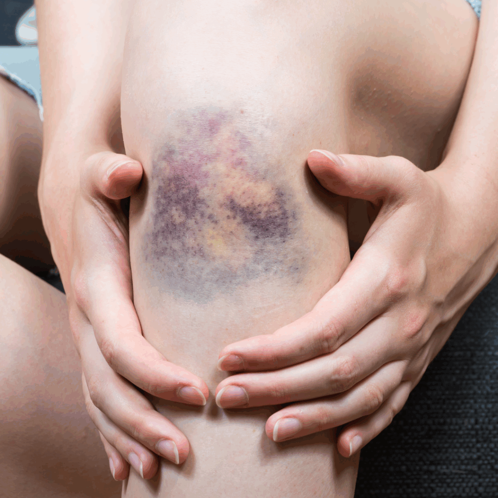 打撲では、**腫れ・痛み・青あざ(皮下出血)**がよくみられます。