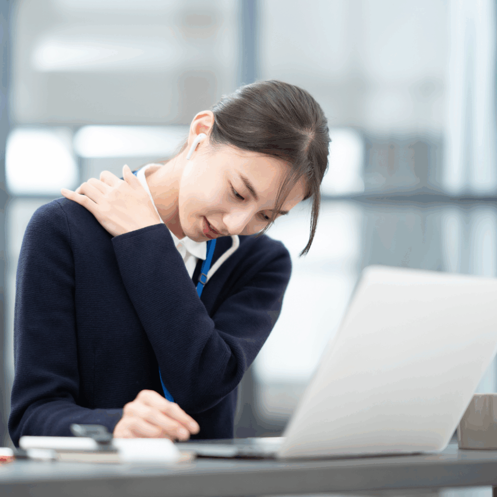 長時間のデスクワークで同じ姿勢を続けていると、肩まわりの血流が滞り、筋肉が硬くなってしまいます。