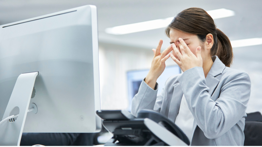 近くを見る作業が続くと目の動きが少なくなり、首の上の部分の筋肉が働き続けることがあります。